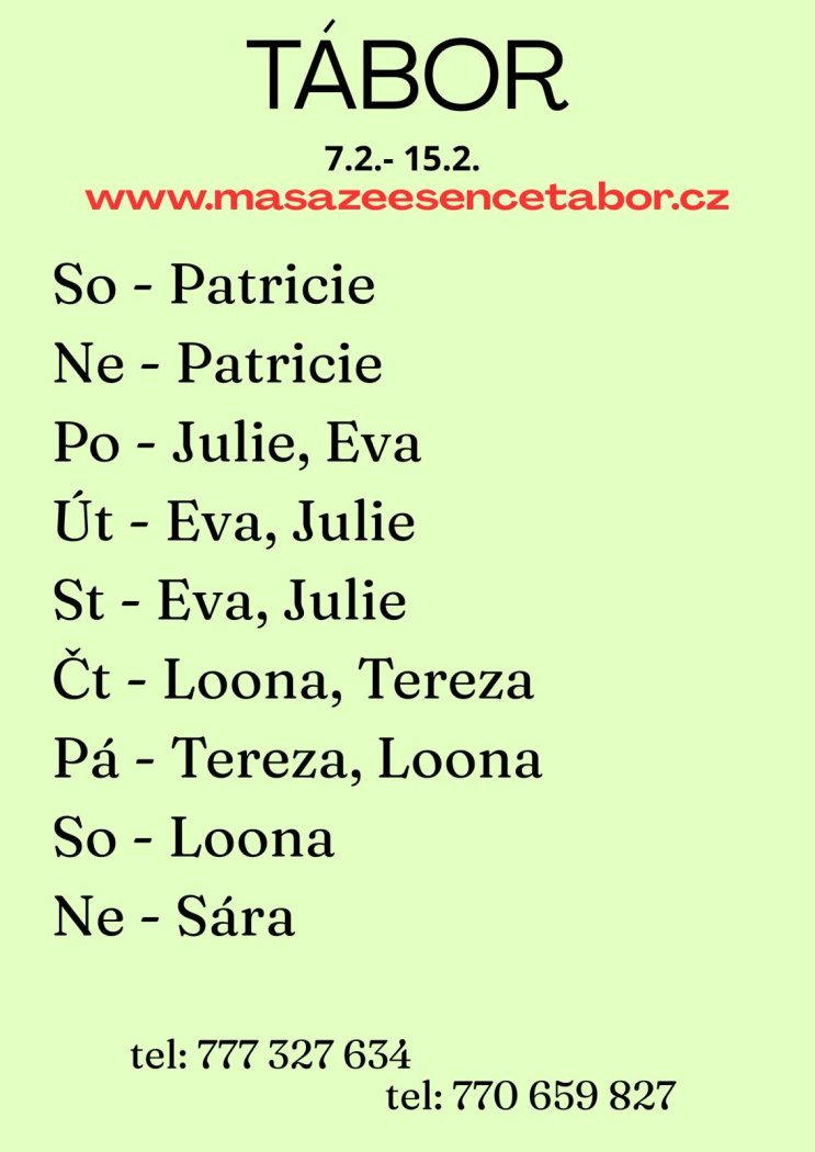 | Pátek | Na dotaz |